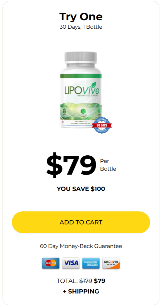 Currently, Lipovive is backed by a 60-day money-back guarantee, giving you ample time to try it risk-free. Free shipping is also available on select multi-bottle packages, along with exclusive discounts for new customers.